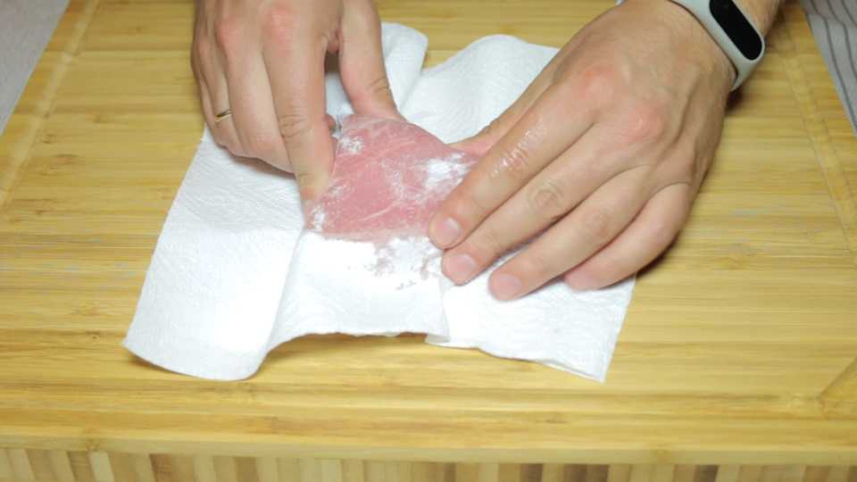 - Обмыв стейки в проточной воде, убираем лишнюю влагу бумажными полотенцами.