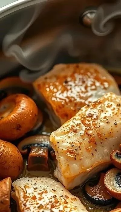 Идеальные гарниры к зубатке с грибами: Прекрасно подойдут картофельное пюре, рис, гречка или овощной салат. Легкий гарнир подчеркнет нежный вкус рыбы и грибов.