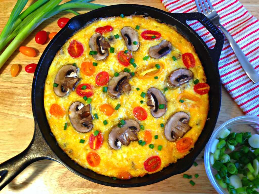 Омлет — это сытное блюдо, которое подходит для питания всей семьи. Грибы добавляйте любые, главное, чтобы они были полностью готовы.