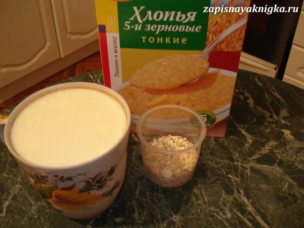 Пяти зерновые хлопья состоят из смеси хлопьев: овсяных, пшеничных, ячменных, ржаных и пшенных, каша из них сочетает в себе полезные свойства пяти зерновых культур. В пост молоко можно заменить водой.