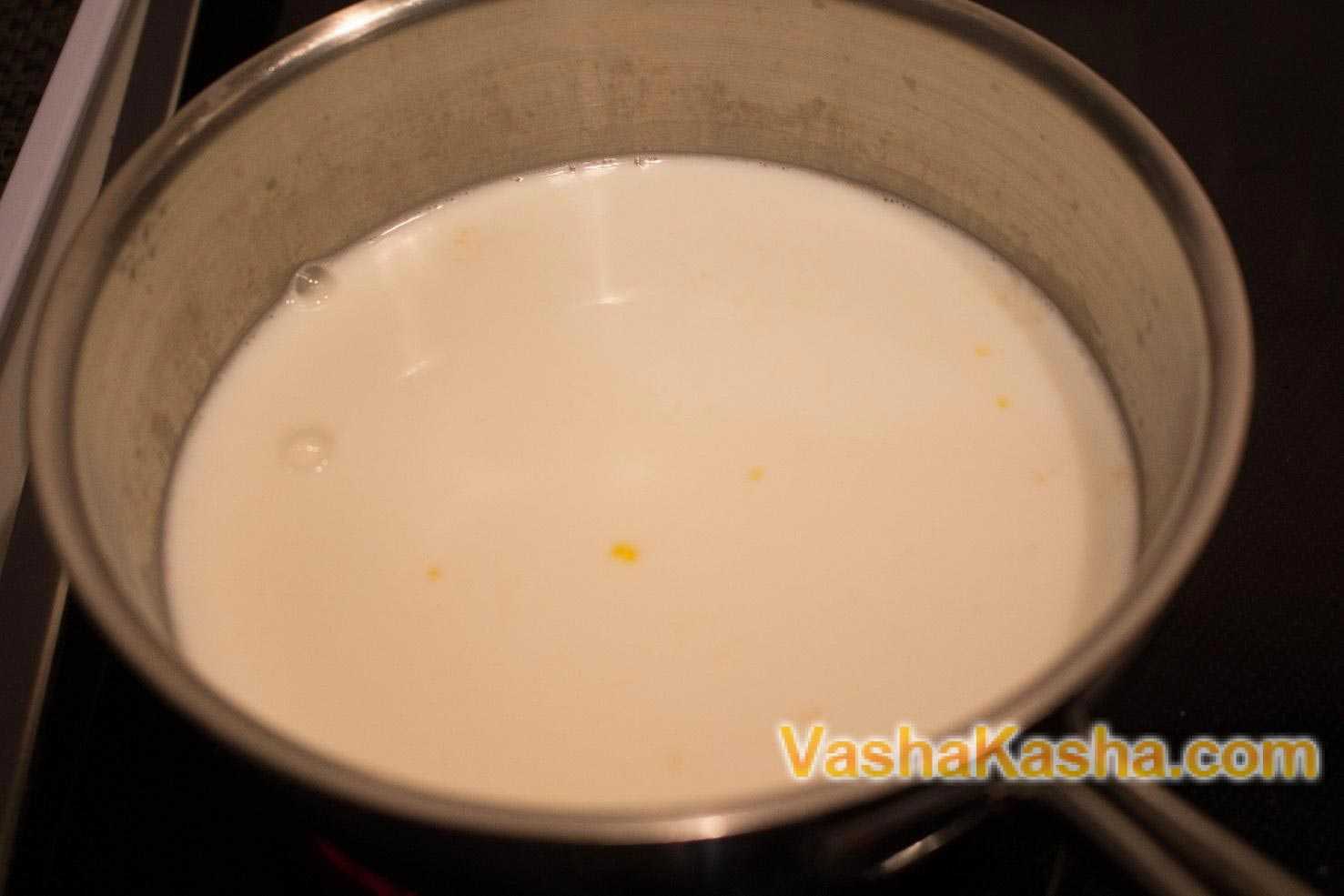- В кастрюлю вливают молоко и воду, дают закипеть.