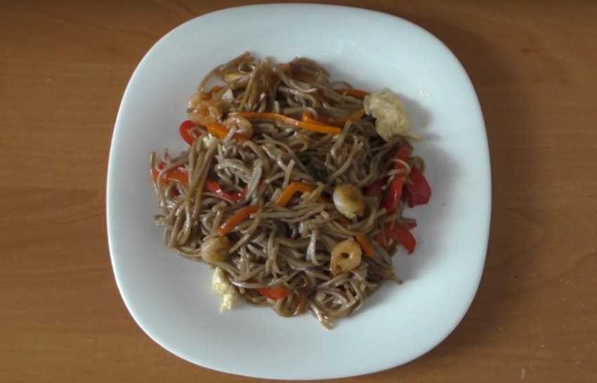 Рецепт приготовления гречневой лапши с овощами и креветками