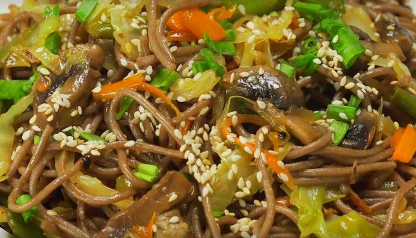 Как приготовить гречневую лапшу соба с мясом говядины и овощами?